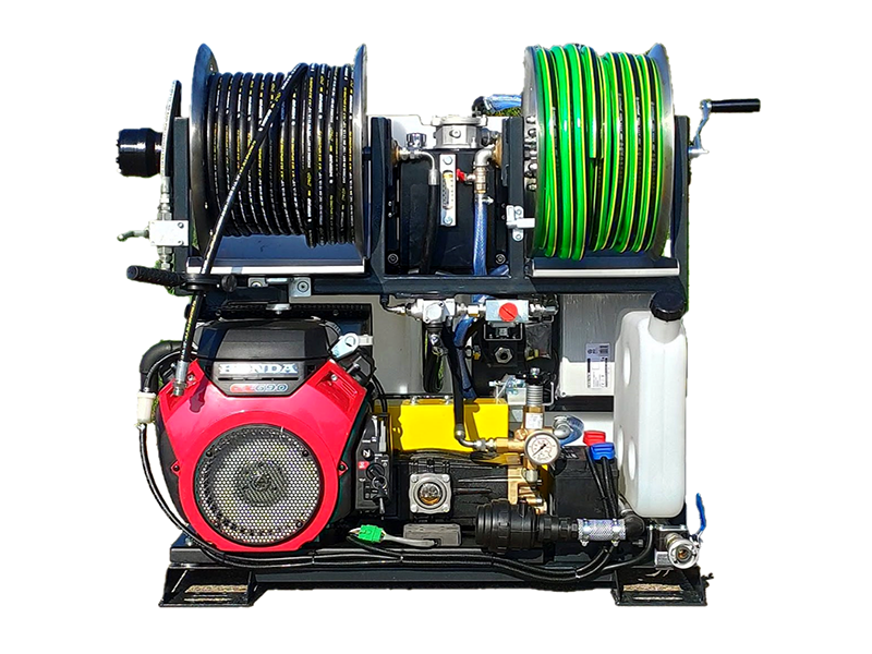 TAJPAN 2.0 has two options of engine: electric and petrol. The device has been equipped with a reliable high-pressure pump from the renowned European manufacturer UDOR from Italy. The pump with ceramic plungers, thanks to which it is possible to work with the device using hot water. It can be also operated by one person from panel control.